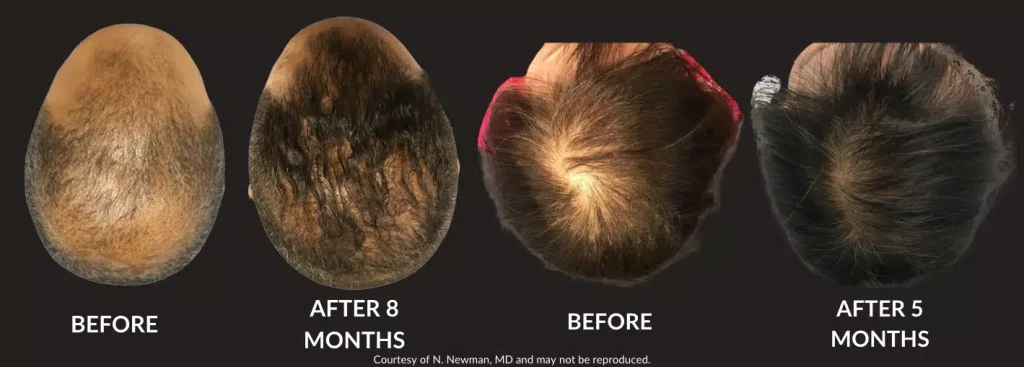 Most patients begin noticing improvements in scalp health and hair texture within a few weeks, while visible changes in thickness and density typically develop over several months with consistent use.